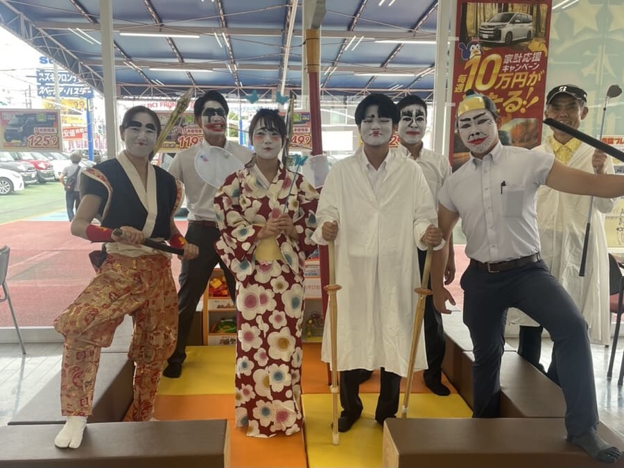 天気予報フィラーが新しくなります! 2023.9.22 RCCで毎週土曜日の23:20頃に放送される「天気予報」では、当店の紹介映像が流れています。先日、社員一同で来年用のフィラーの撮影を行いました。営業マンは気合いの入った白塗りで出演しています(>_<)他の社員も一緒に楽しく撮影ができました☆新しい映像の公開はもう少し先になりますが、是非ご期待ください! お知らせ一覧へ戻る